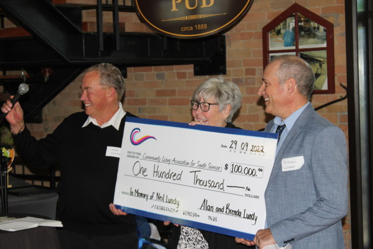 The 60th anniversary was a great event and also revealed a special donation presentation by the Lundy family in honour of Alan Lundy’s brother Neil Lundy. This donation will help fund summer camp in the coming years for people supported who many need financial assistance. It has also helped us to purchase a swing set for people in wheelchairs as well as numerous lounge chairs for the group homes.Thank you to the Lundy family from all of us at CLASS.