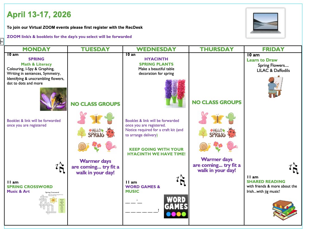 REGISTER on the REC.DESK for APRIL / MAY ZOOM programs soon.